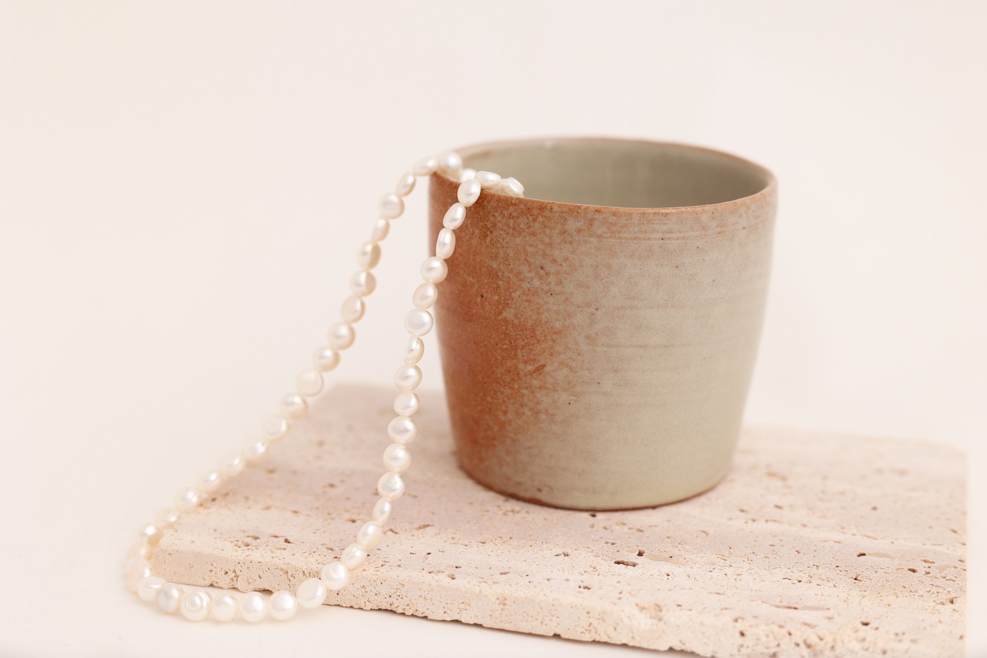 A delicate necklace made with round freshwater pearls, each with its own natural texture and charm. Simple, soft, and effortlessly wearable — a subtle touch of everyday elegance.
