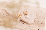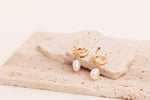 These earrings feature small gold hoops with oval pearls hanging below. A simple and timeless design that’s easy to wear every day or for special occasions.