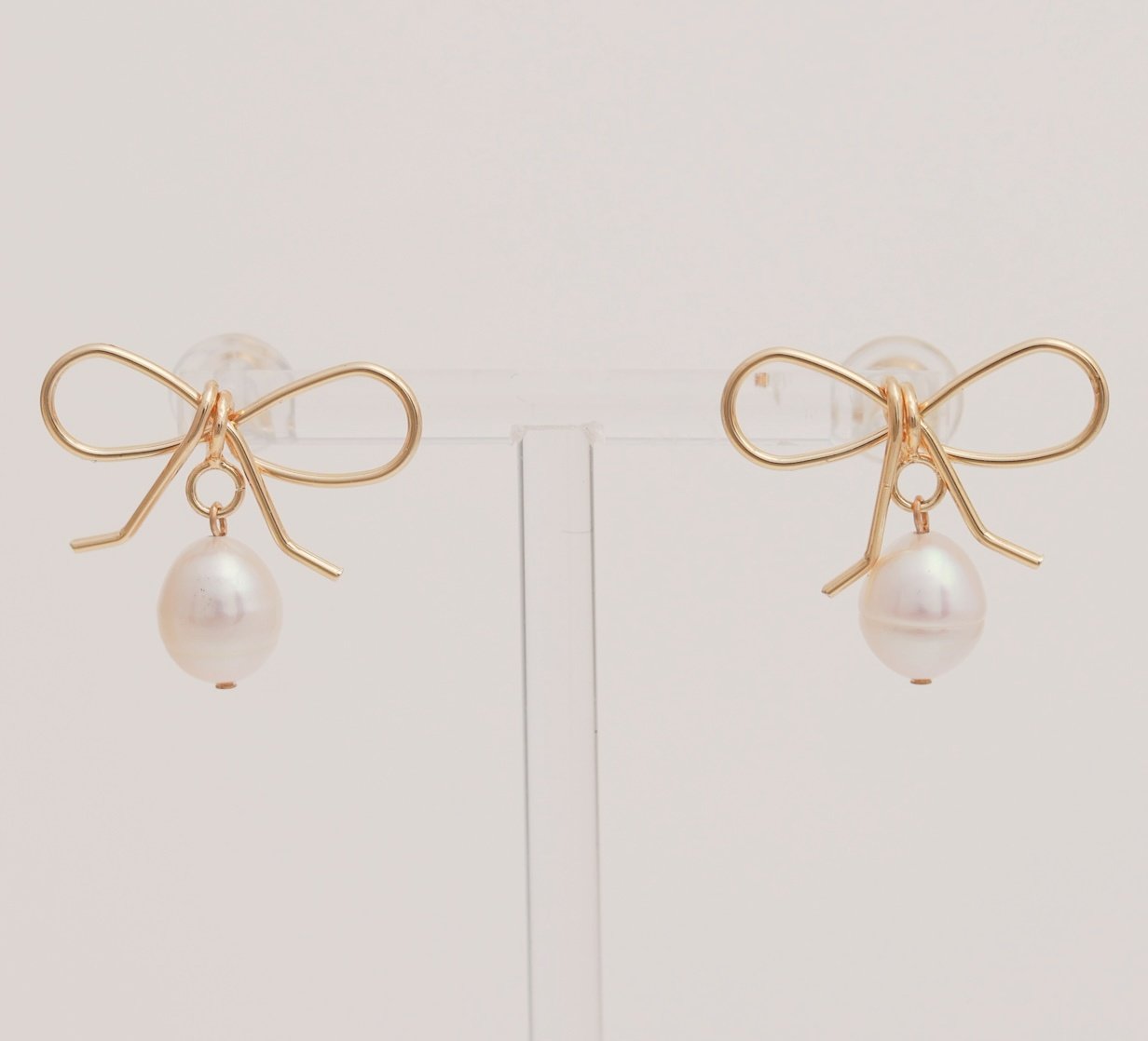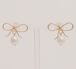 These earrings feature delicate gold bow designs with pearls hanging below. A sweet and feminine style that adds charm and elegance to any outfit.