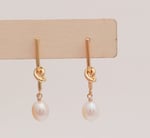 These drop earrings feature round white pearls hanging from slim gold bars with a small knot detail. Simple yet elegant, they bring a touch of modern charm to any outfit.