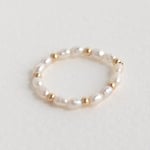 This stretch ring features small flat freshwater pearls paired with gold-filled beads for a minimalist, refined look. Its flexible design ensures a comfortable fit, making it a versatile piece for both everyday wear and special occasions.